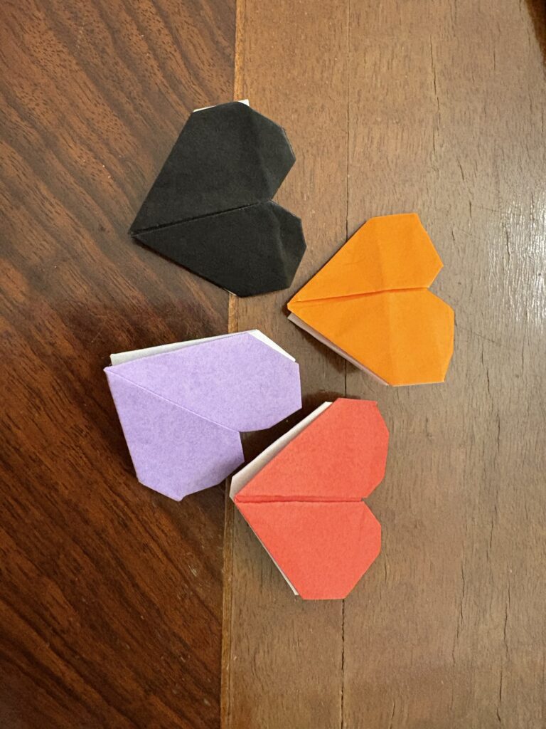 ハートを折りました。意外と簡単に折れた。でもこれ覚えられない。1日経つと折り方忘れる。