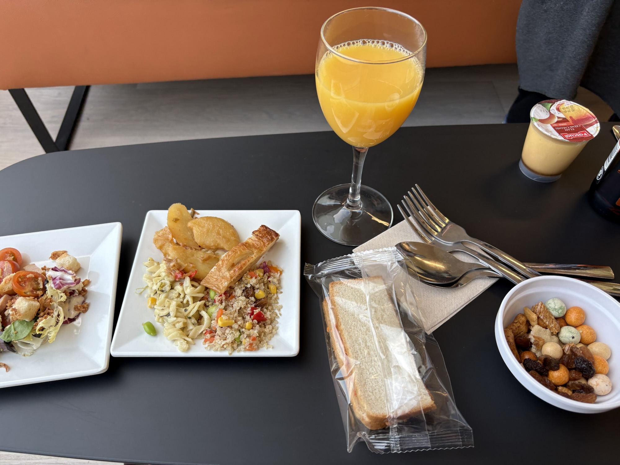 プライオリティパスラウンジのsala VIPは少しわかりづらい位置にあるけど、人は少ないし、ソファー席が多めでくつろげるし、ご飯類もお酒類もかなり種類が多くて良かった!