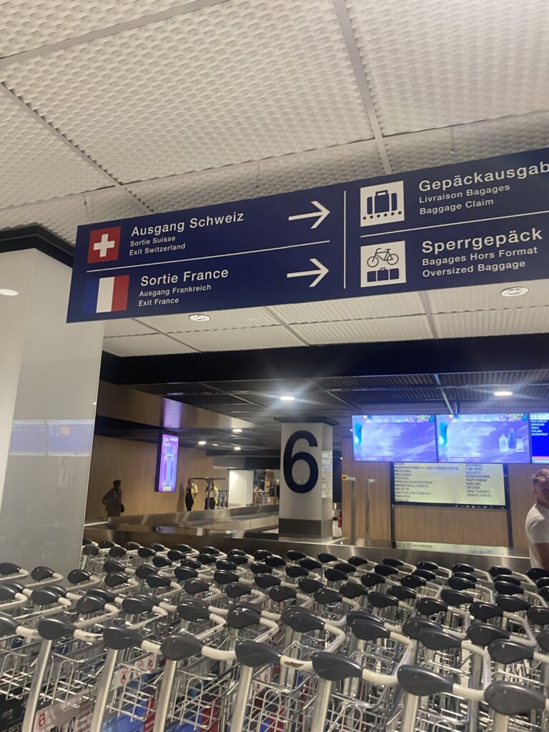 実際、空港コードはフランス国内線はミュールーズ(MLH)、スイス国内線はバーゼル(BSL)、国際線はユーロ・エアポート(EAP)らしい。1つの空港で3つの空港コードを持つ、世界で唯一の空港なんだって!