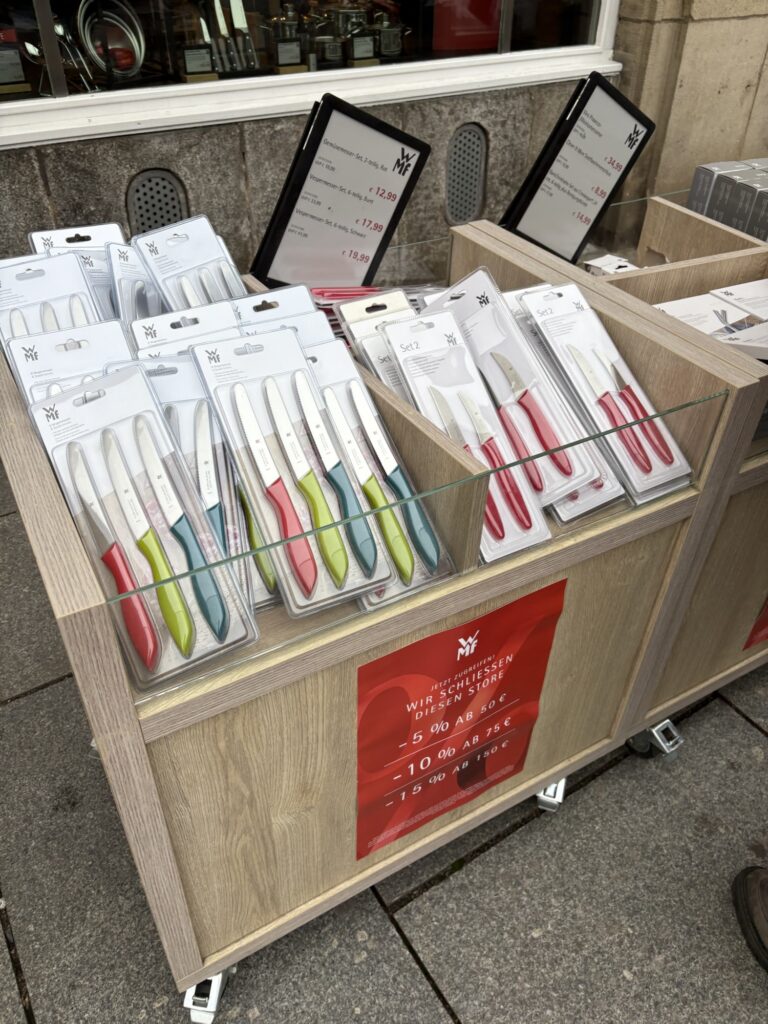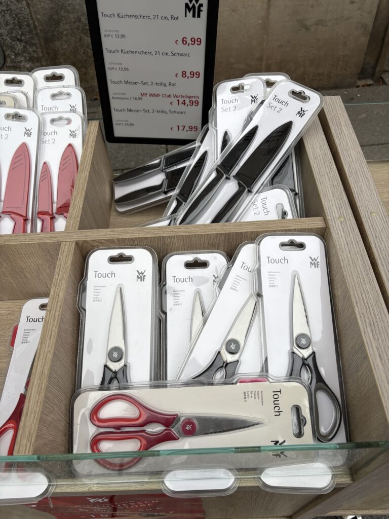 この前ドレスデンを旅行していると、屋外で包丁とハサミが売ってた。切れ味良いのかな。