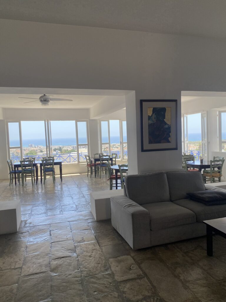 場所はパフォス中心部の端っこ、公園の中のような所の高台を上がったところにある。歩いて15分くらいの所には大きなショッピングモールあり。
