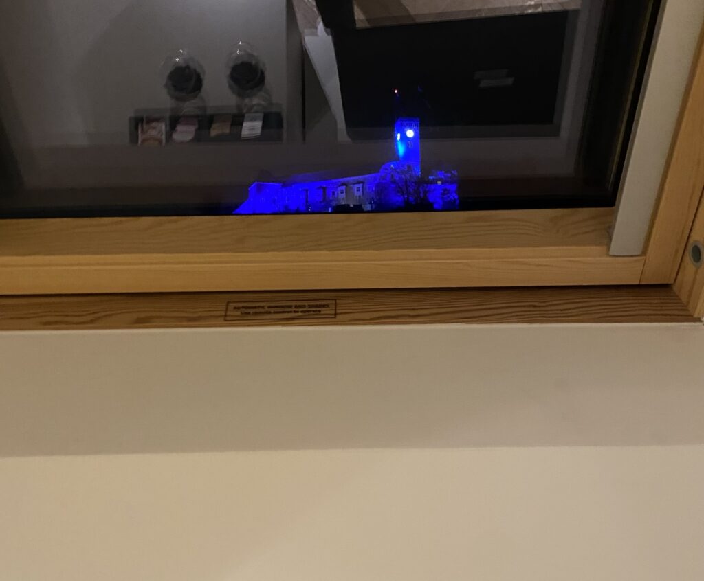 屋根裏部屋っぽい雰囲気で、部屋からお城が見えたぞ!