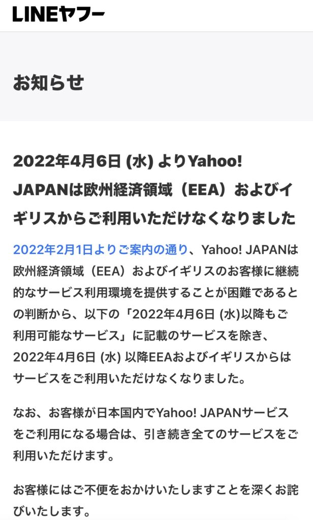 Yahooってグローバルな企業じゃないのか??グローバル企業なのとアクセス制限は関係ないか。