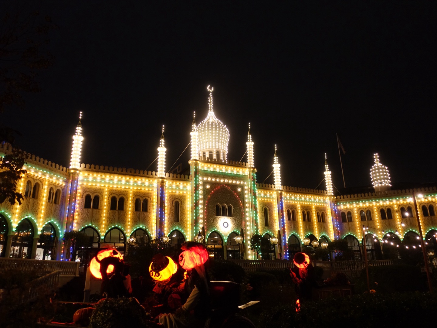 さて、今回のメインチボリ公園へ!ハロウィンの時期でイルミネーションがすごく綺麗だった。