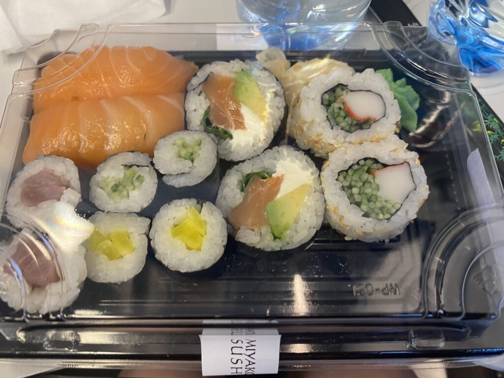 クラクフからワルシャワまで電車で移動。移動のお供にお寿司を食べたよ。