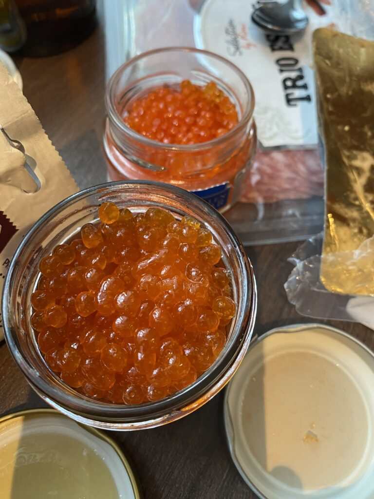 外食続きで胃が疲れていたので、スーパーでイクラなどを買ってホテルの部屋で食べる。