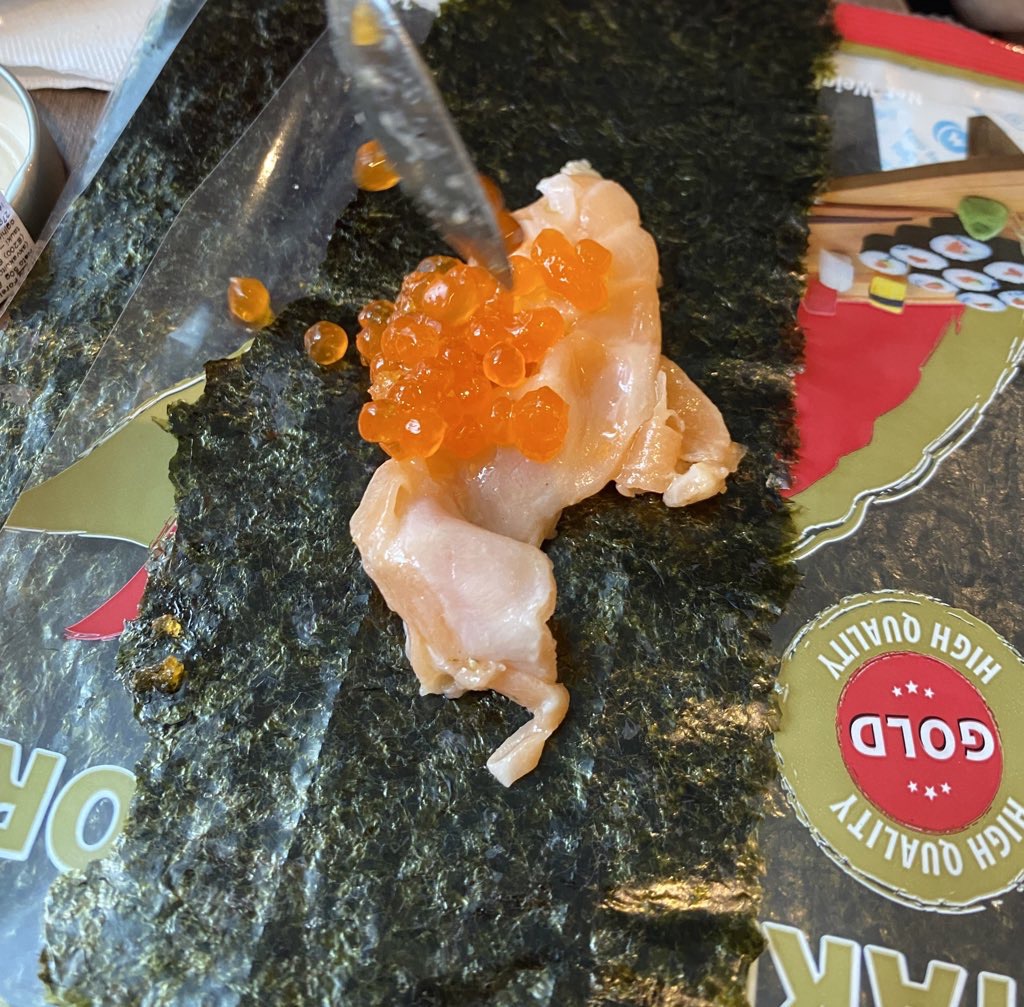 スーパーで食材を買って、サーモンやいくらを食べる。美味しかった!
