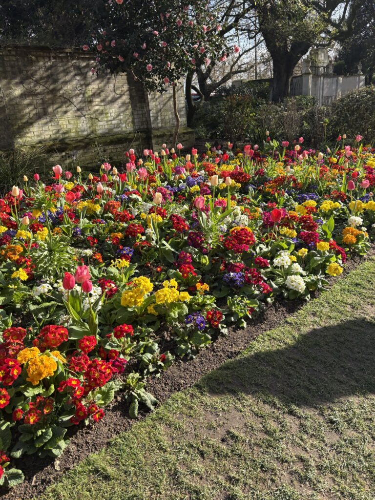ここから地下鉄に乗り、ホテルへ。今回ロンドンに来て初の地下鉄。途中でチューリップが綺麗だった。
