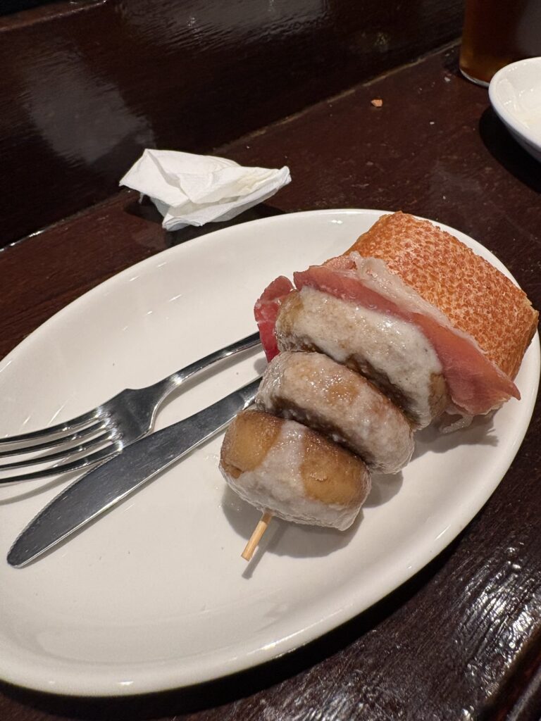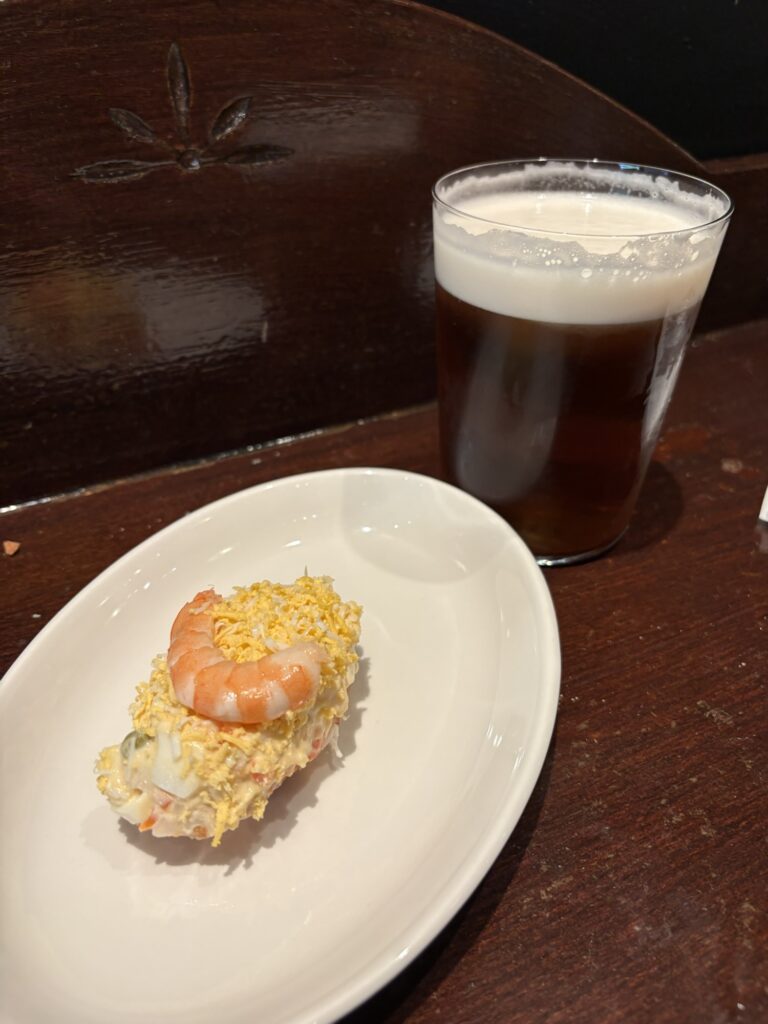 ビール1杯、上の小皿3皿で11.5ユーロ(2,100円)くらい。めちゃくちゃ満足。