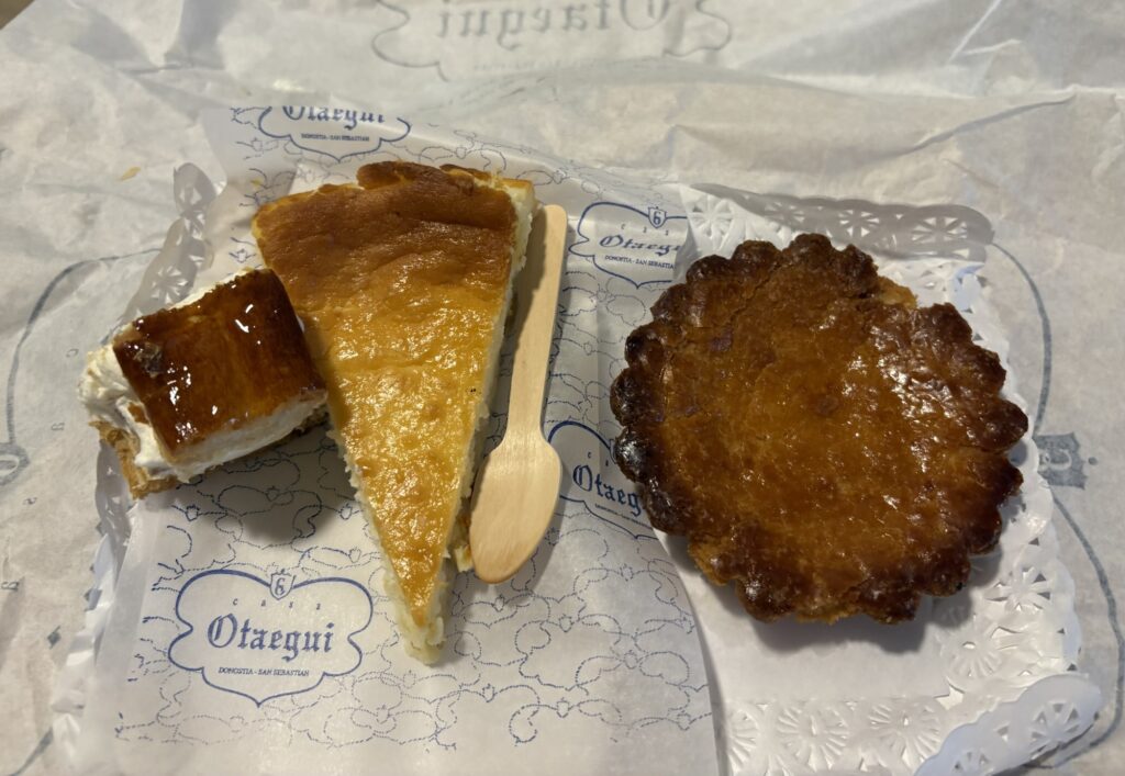 バスクチーズケーキ、小さいクリームのお菓子、大きいアーモンド系のお菓子で8.6ユーロ(1,500円)くらい。安い!!
