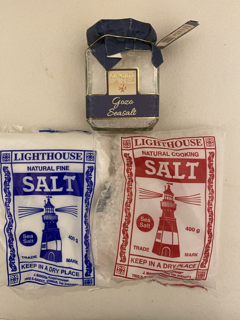 ゴゾ島の塩、スーパーの塩を買った。ゴゾ島の塩は高いけど、スーパーの塩は1ユーロもしない。