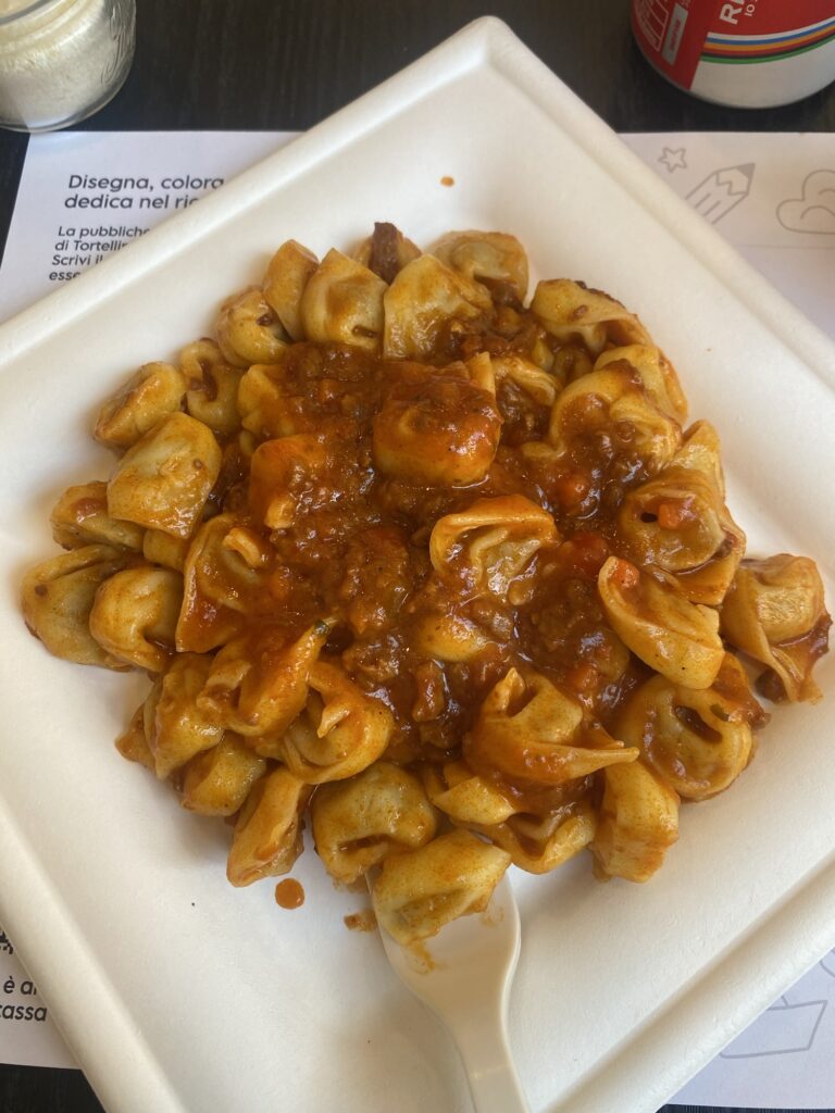 Tortellini e ciccioli – Street foodというお店で、気軽にパスタが食べられる。モチモチで美味しかった。
