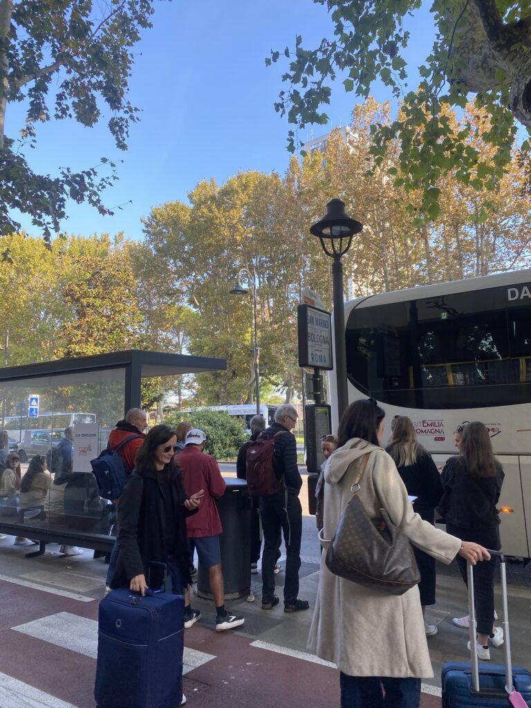 リミニ駅からボローニャ空港までは直通のバスがある。ボローニャ駅までは電車でも行けるけど、ボローニャを観光せず空港のみ利用するならバスの方が楽。