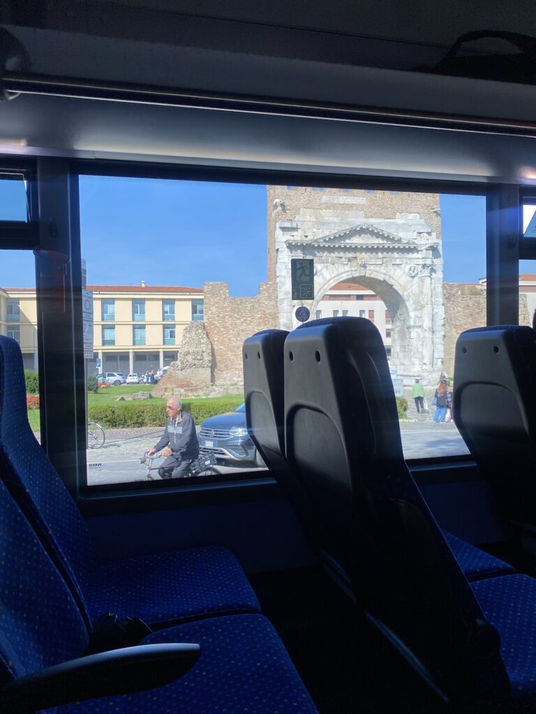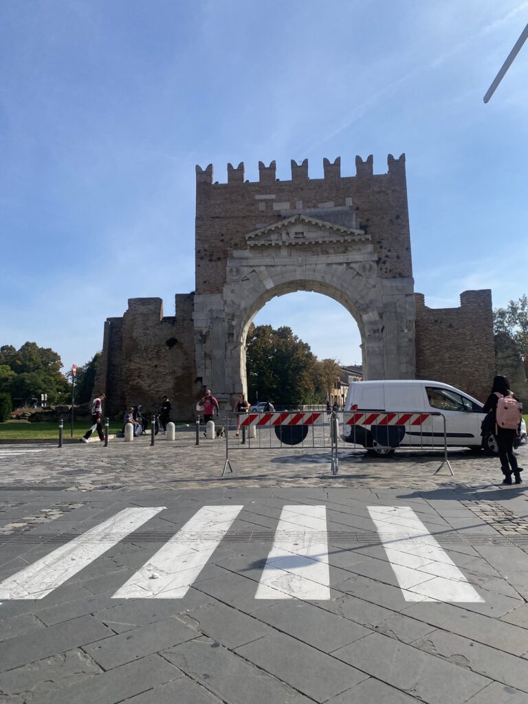 これがリミニの凱旋門、アウグストゥスの凱旋門。かなり歴史のあるものらしい。