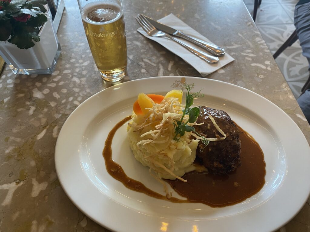 ハンバーグ(?)がとても美味しかった。ビールも。